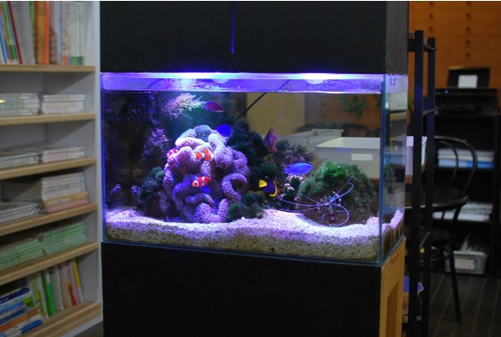 突然ですが教室には海水魚がいます。イソギンチャクと戯れる映画で有名になったファインディングニモもいますよ!パソコンの画面を見ていると疲れるので気持ちも目もリフレッシュできます。
